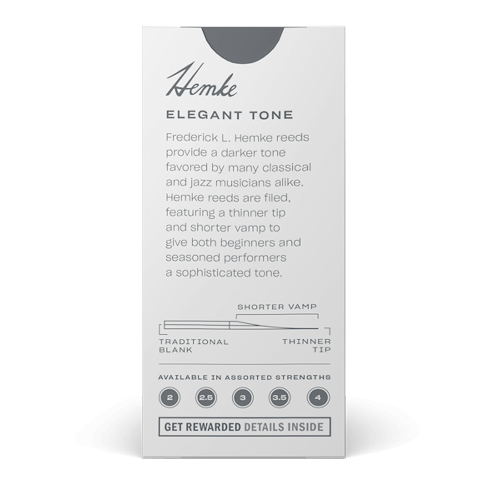 Frederick L. Hemke Blätter für Sopransaxophon in Stärke 2.5 werden wegen ihrem dunklen Sound in der Klassik und im Jazz eingesetzt. Der Schnitt ermöglicht in den tiefen Tönen mehr Freiheit in der Ansprache.