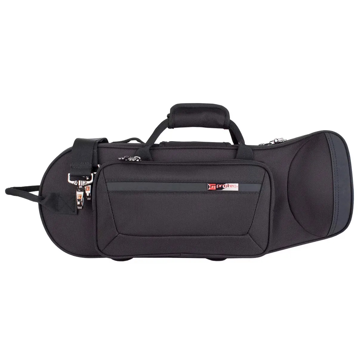 Der Protec PB301TL ist ein robuster Travel‑Light Koffer für Trompeten, der den Schutz eines klassischen Hardcases mit der Leichtigkeit eines Gigbags verbindet. Die wetterbeständige Außenseite aus strapazierfähigem 1680D Ballistic Nylon sowie verstärkte Nähte und Gummischutz an kritischen Stellen sorgen für sichere Aufbewahrung und Transport deines Instruments. Der Innenraum mit gepolstertem Samt‑Futter hält die Trompete sicher an Ort und Stelle, während große Außentaschen Platz für Zubehör bieten. Dank gepolstertem Tragegriff und Schultergurt lässt sich der Koffer komfortabel transportieren – ideal für Schule, Probe oder Auftritt.