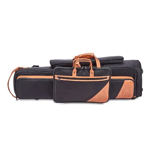 Schwarzes Nylon Cordura mit braunen Lederbesätzen Elegantes und schützendes Tenorposaunen-Gigbag aus reißfestem Nylon Cordura-Gewebe und stilvollen Lederbesätzen.