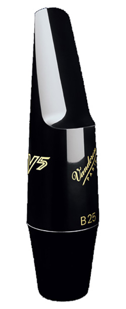 Die aus der Serie V5 stammenden Mundstücke aus Ebonit haben eine flache Bahn, eine kleine Bahnöffnung, normale Kammern oder Jazzkammern.