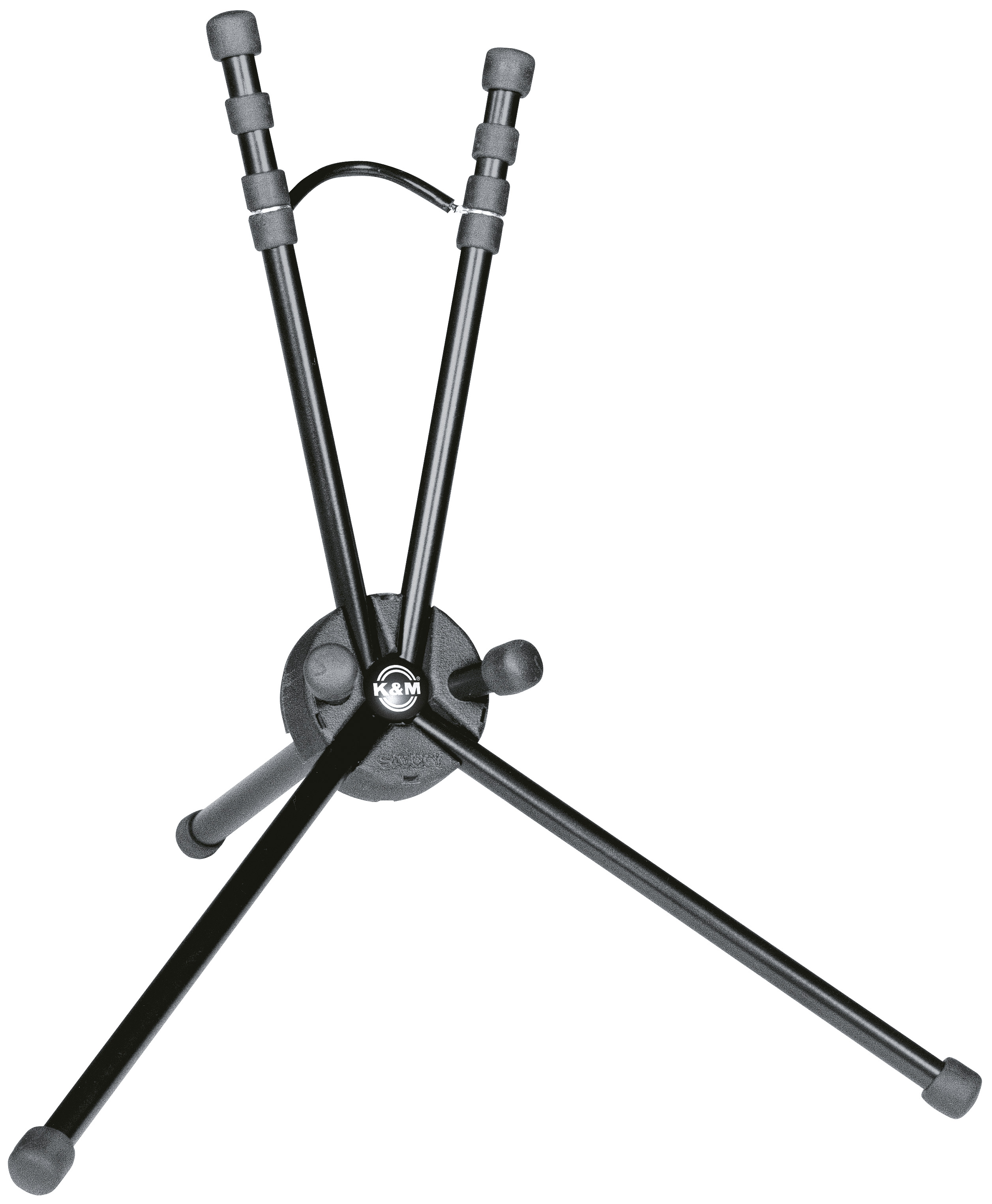 Stabil und praktisch: Der superkleine, äußerst kompakte Saxophonständer »Saxxy« bietet Halt für Es-Alt Saxophone. Der Clou: Der zusammengelegte Ständer kann in dem mitgelieferten Veloursbeutel im Schalltrichter des Saxophons verstaut und transportiert werden.