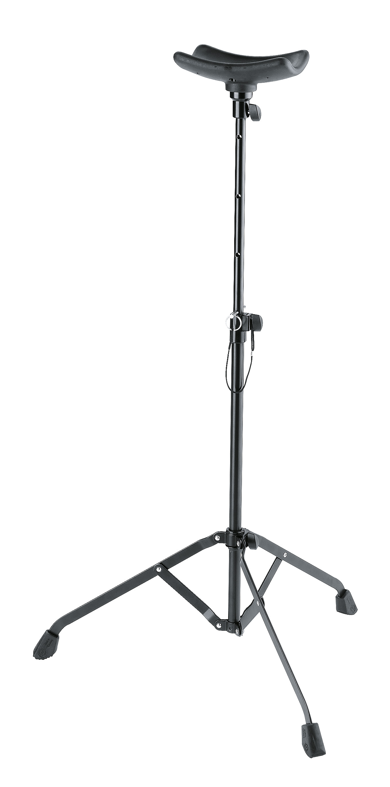 Für alle Tuben. Breite, zusammenlegbare Fußkonstruktion und höhenverstellbare Rohrkombination. Gummigepolsterte Instrumentenauflageschale.